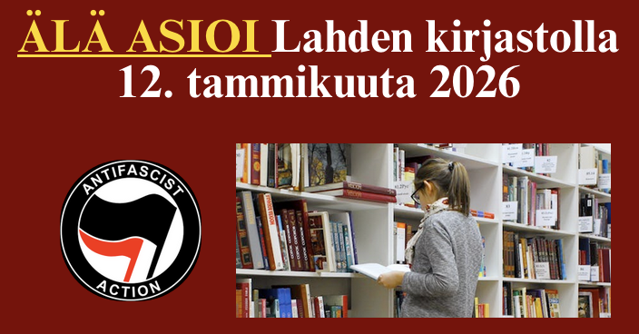 LANKA -verkosto kannustaa kirjaston käyttäjiä välttämään asiointia Lahden kirjastolla 12.1. Teemu Keskisarjan fasistisen “Väestönvaihtoa” käsittelevän tilaisuuden vuoksi.